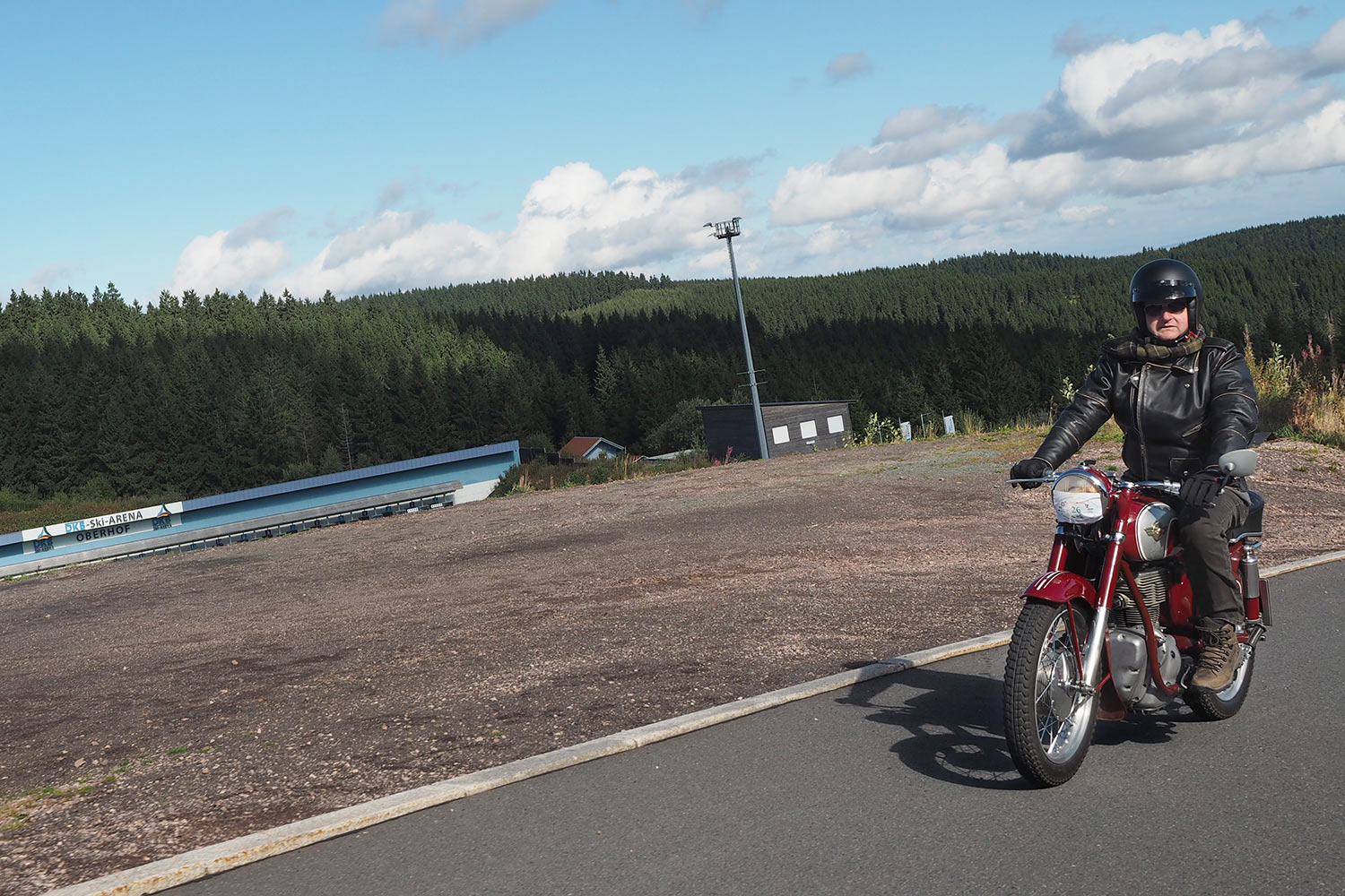 Aus Varel (Niedersachsen) war Oldtimerfreund Uwe Oltmanns angereist, um seinen Nachbau des BMW-Eigenbau-Rennwagens von Paul Greifzu in dessen Heimatstadt zu präsentieren. Das Interesse für dieses und die anderen Fahrzeuge – Ihle-BMW Cabrio, Fiat-Rennwagen Baujahr 1925, Ford A Speedster, Ford Escort RS 2000 Mk 2 (Nachbau), MG A, Simson Supra Supersport und Wartburg 311 Cabrio – war riesengroß. Am Vor- und Nachmittag gingen bei schönem Wetter die Motorräder in zwei Runden über insgesamt ca. 100 km auf Tour. Erstmals mit dabei waren zwei Fahrzeuge der Marken Diamant und Frischauf, die für einiges Aufsehen sorgten. Die Ergebnisse dieser gewerteten Fahrt finden sie hier.