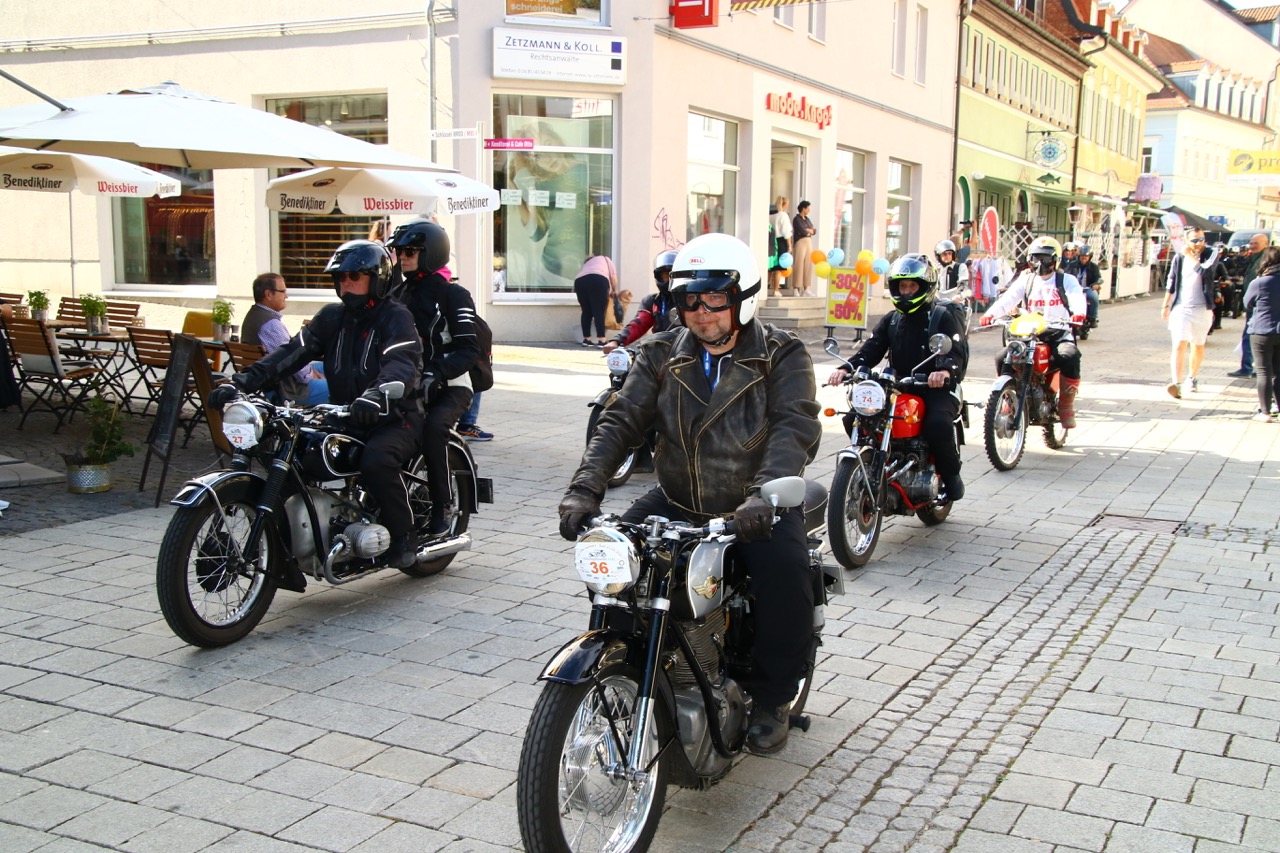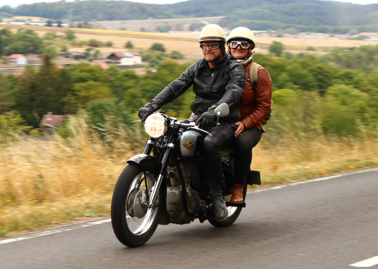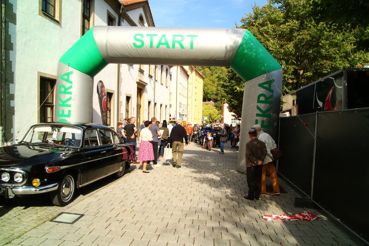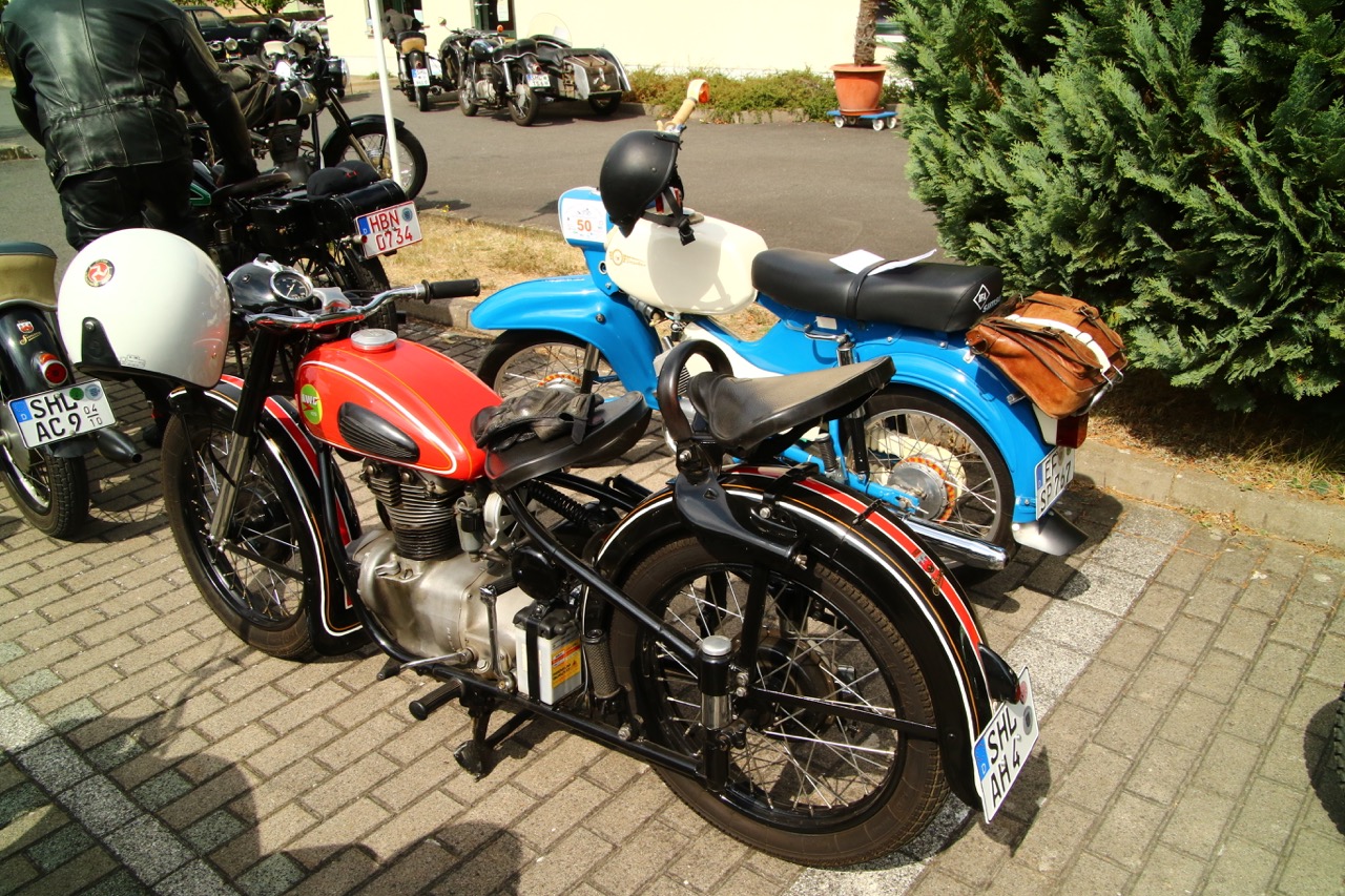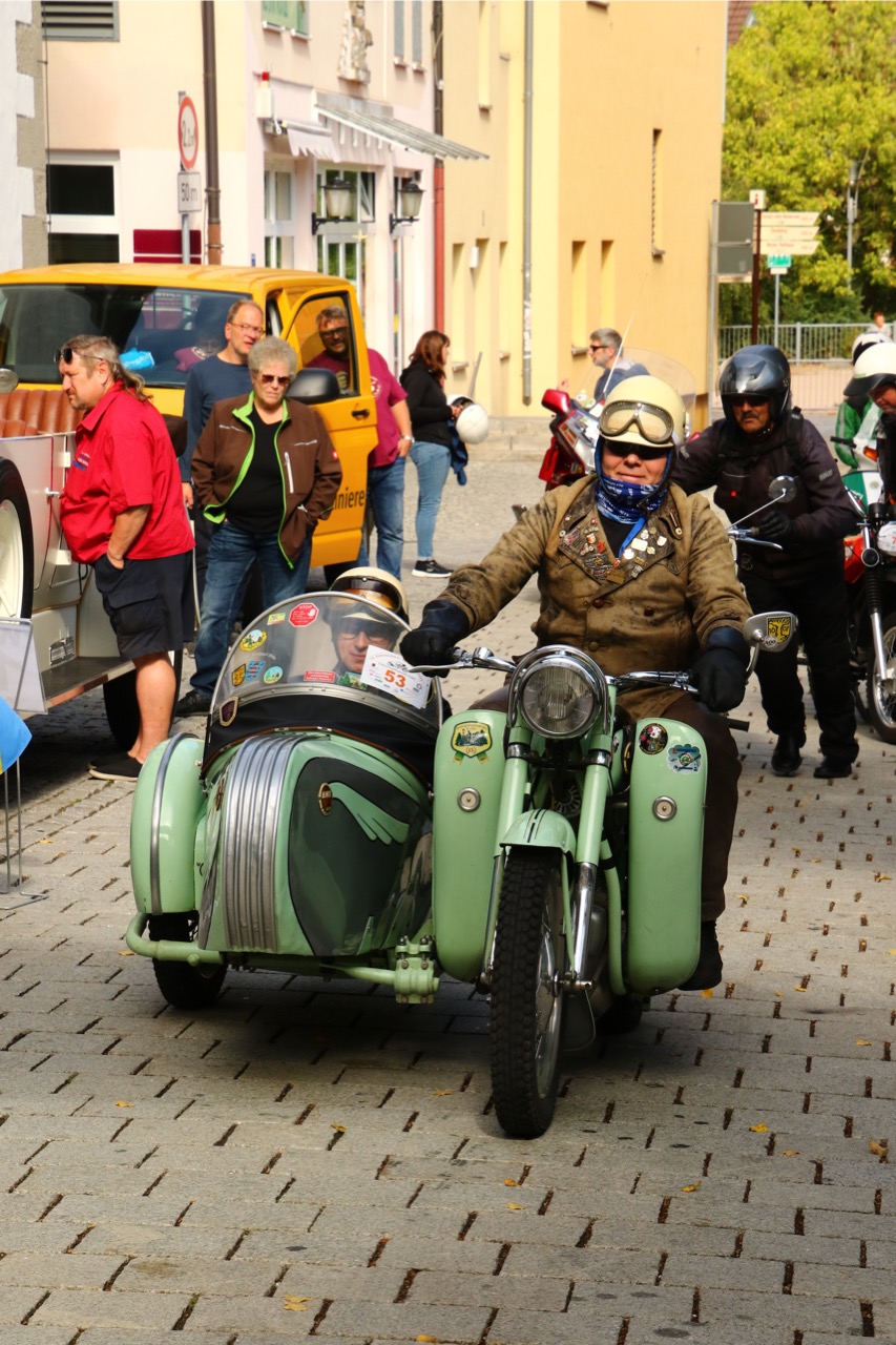 Wenn Anfang September in der Fußgängerzone von Suhl schwere Viertaktmotore ihren tiefen Sound fortissimo hämmern, Simson-Werksenduros Drehzahlorgien gen Himmel schicken und japanische Präzionstriebwerke in mezzopiano vor sich hinwerkeln ist wieder Oldtimerfahrt und Ausnahmezustand im Fahrzeugmuseum Suhl. Die Freunde alter Motorräder huldigen ihrem Hobby und feiern einen Oldtimer- Festtagtag rund um Suhl auf den malerischen Bergstraßen des Thüringer Waldes. Mittlerweile gehört die Oldtimerfahrt Suhl bereits zur Tradition und auch die Auswahl des 03. Septembers für die 14. Auflage erwies sich als Glücksfall. Bestes Motorradwetter mit wenigen Regentropfen zwischendurch herrliche Strecken versteckt zwischen Bergen, einsamen Tälern und malerischen Ortschaften im Thüringer Waldes schienen an diesem Tag wie extra aufpoliert für die Teilnehmer mit ihren tollen Oldtimern. Aus vielen Teilen Deutschlands waren sie angereist und von der Simson Schwalbe bis zur Honda Goldwing war so ziemlich alles vertreten, was in dieser Welt zwischen 1926 und 1992 Motorradgeschichte geschrieben hat. Von Ein- bis Vierzylinder von A wie AWO bis Z wie Zündapp reichte das Spektrum des bunten Feldes. Man konnte meinen sie wären an diesem einen Tag nur zusammengekommen um den staunenden und begeisterten Zuschauern an der Strecke ein rollendes Museum zu präsentieren. (Text: Dr.Hartmut Göbel)