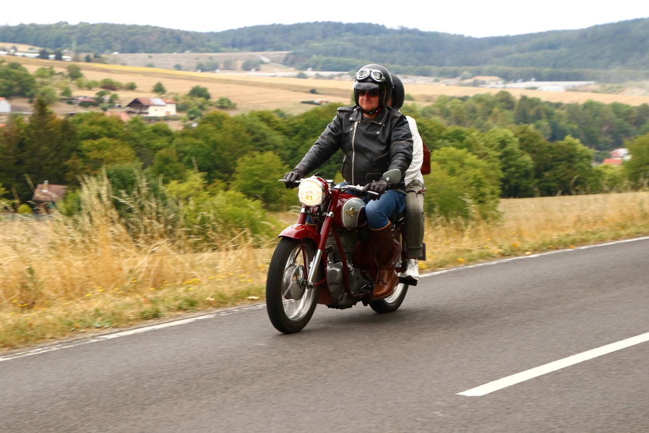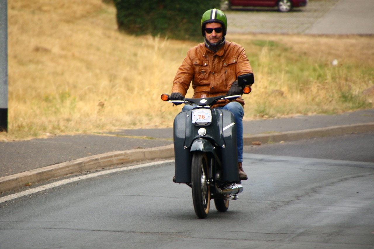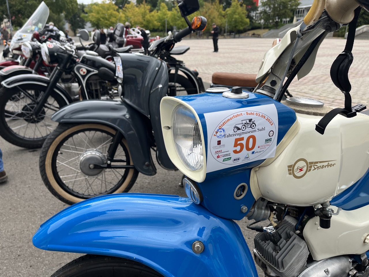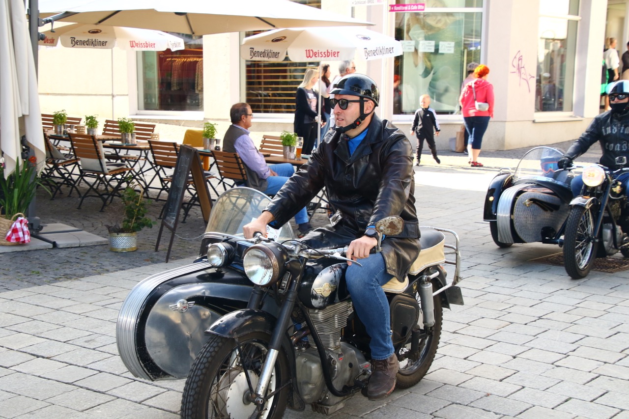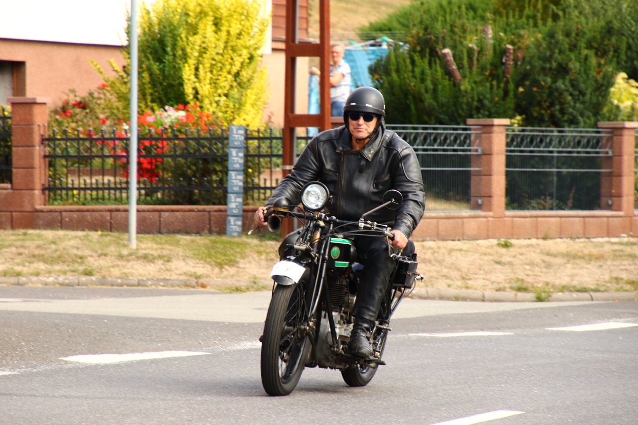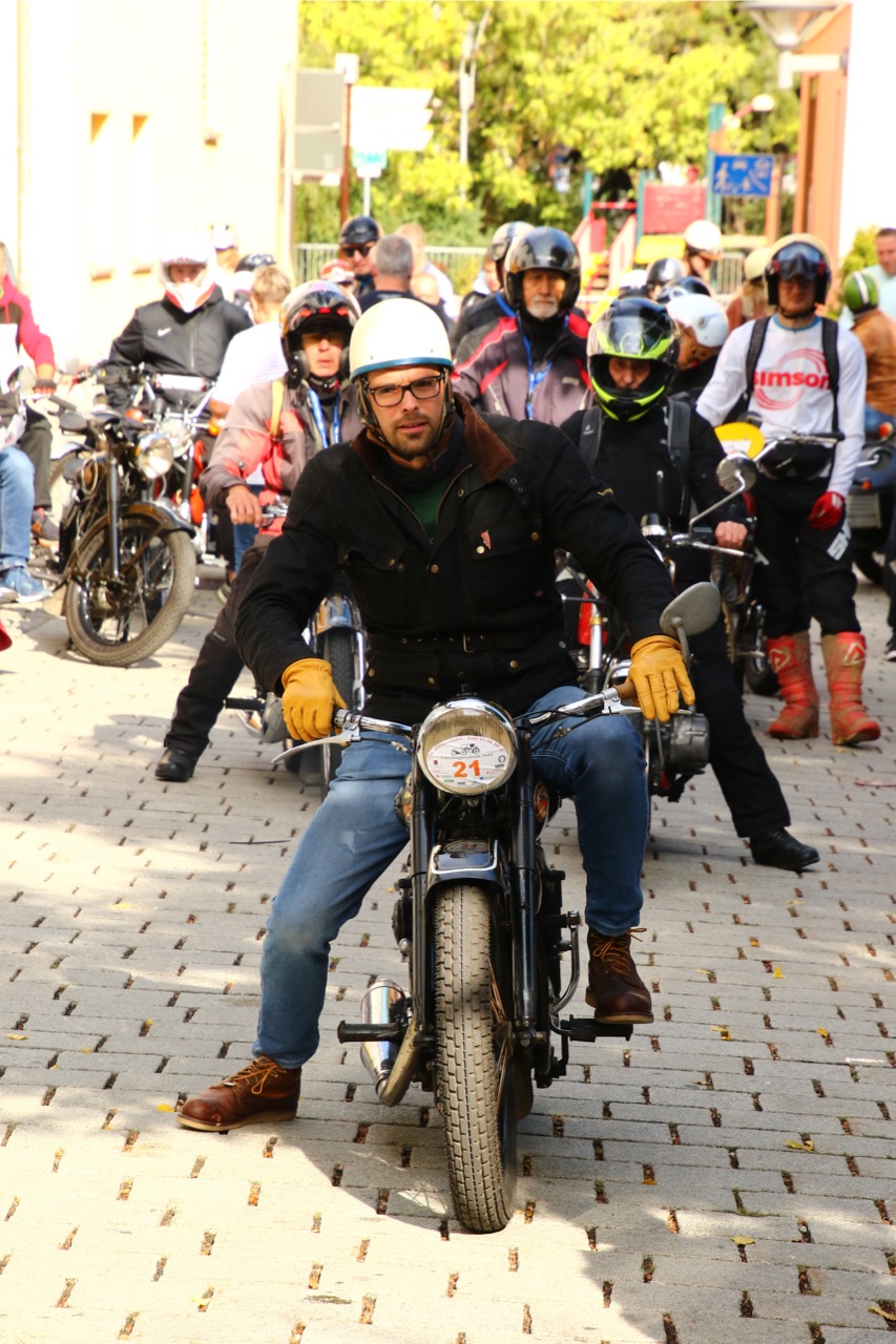 Wenn Anfang September in der Fußgängerzone von Suhl schwere Viertaktmotore ihren tiefen Sound fortissimo hämmern, Simson-Werksenduros Drehzahlorgien gen Himmel schicken und japanische Präzionstriebwerke in mezzopiano vor sich hinwerkeln ist wieder Oldtimerfahrt und Ausnahmezustand im Fahrzeugmuseum Suhl. Die Freunde alter Motorräder huldigen ihrem Hobby und feiern einen Oldtimer- Festtagtag rund um Suhl auf den malerischen Bergstraßen des Thüringer Waldes. Mittlerweile gehört die Oldtimerfahrt Suhl bereits zur Tradition und auch die Auswahl des 03. Septembers für die 14. Auflage erwies sich als Glücksfall. Bestes Motorradwetter mit wenigen Regentropfen zwischendurch herrliche Strecken versteckt zwischen Bergen, einsamen Tälern und malerischen Ortschaften im Thüringer Waldes schienen an diesem Tag wie extra aufpoliert für die Teilnehmer mit ihren tollen Oldtimern. Aus vielen Teilen Deutschlands waren sie angereist und von der Simson Schwalbe bis zur Honda Goldwing war so ziemlich alles vertreten, was in dieser Welt zwischen 1926 und 1992 Motorradgeschichte geschrieben hat. Von Ein- bis Vierzylinder von A wie AWO bis Z wie Zündapp reichte das Spektrum des bunten Feldes. Man konnte meinen sie wären an diesem einen Tag nur zusammengekommen um den staunenden und begeisterten Zuschauern an der Strecke ein rollendes Museum zu präsentieren. (Text: Dr.Hartmut Göbel)