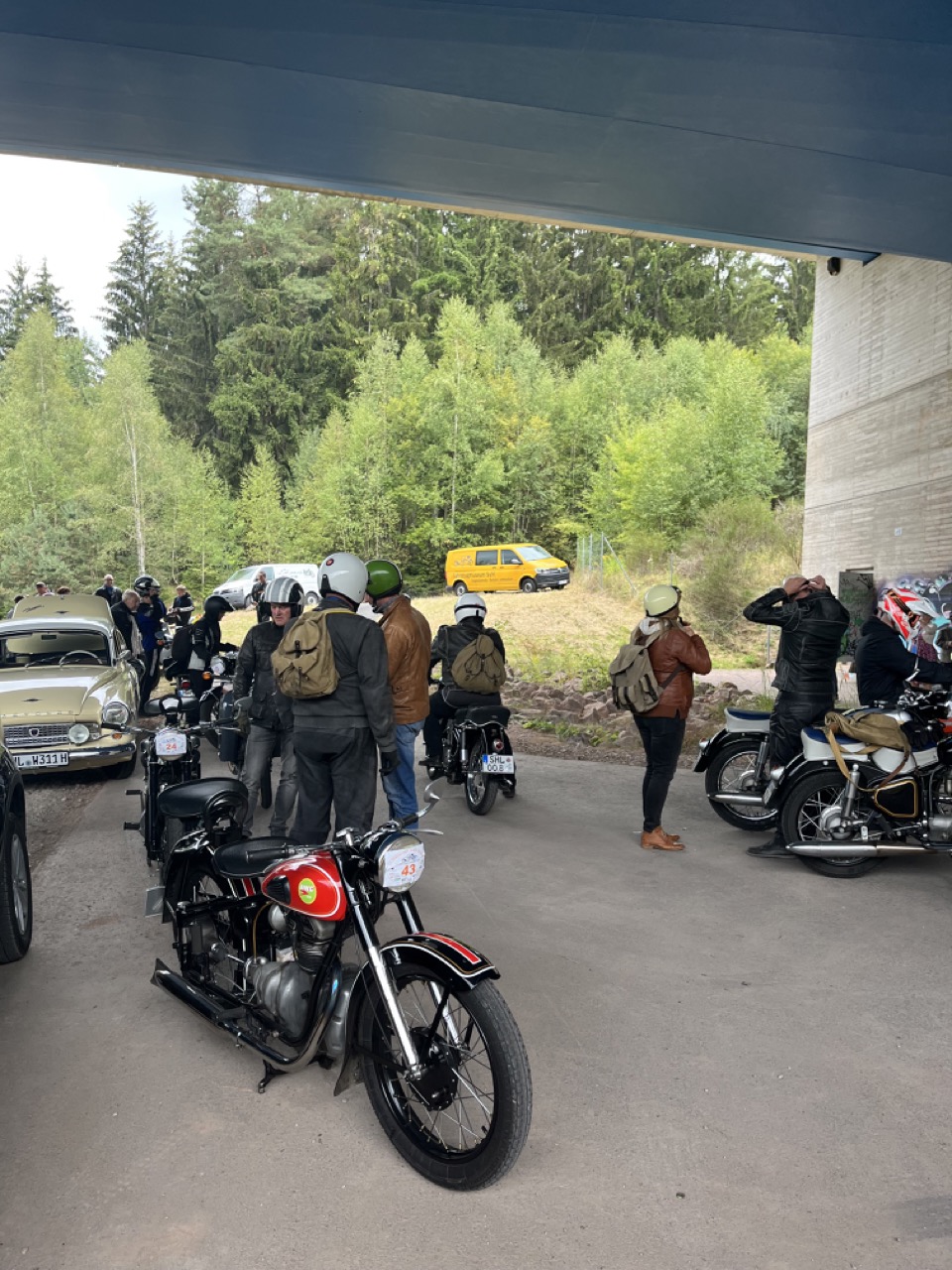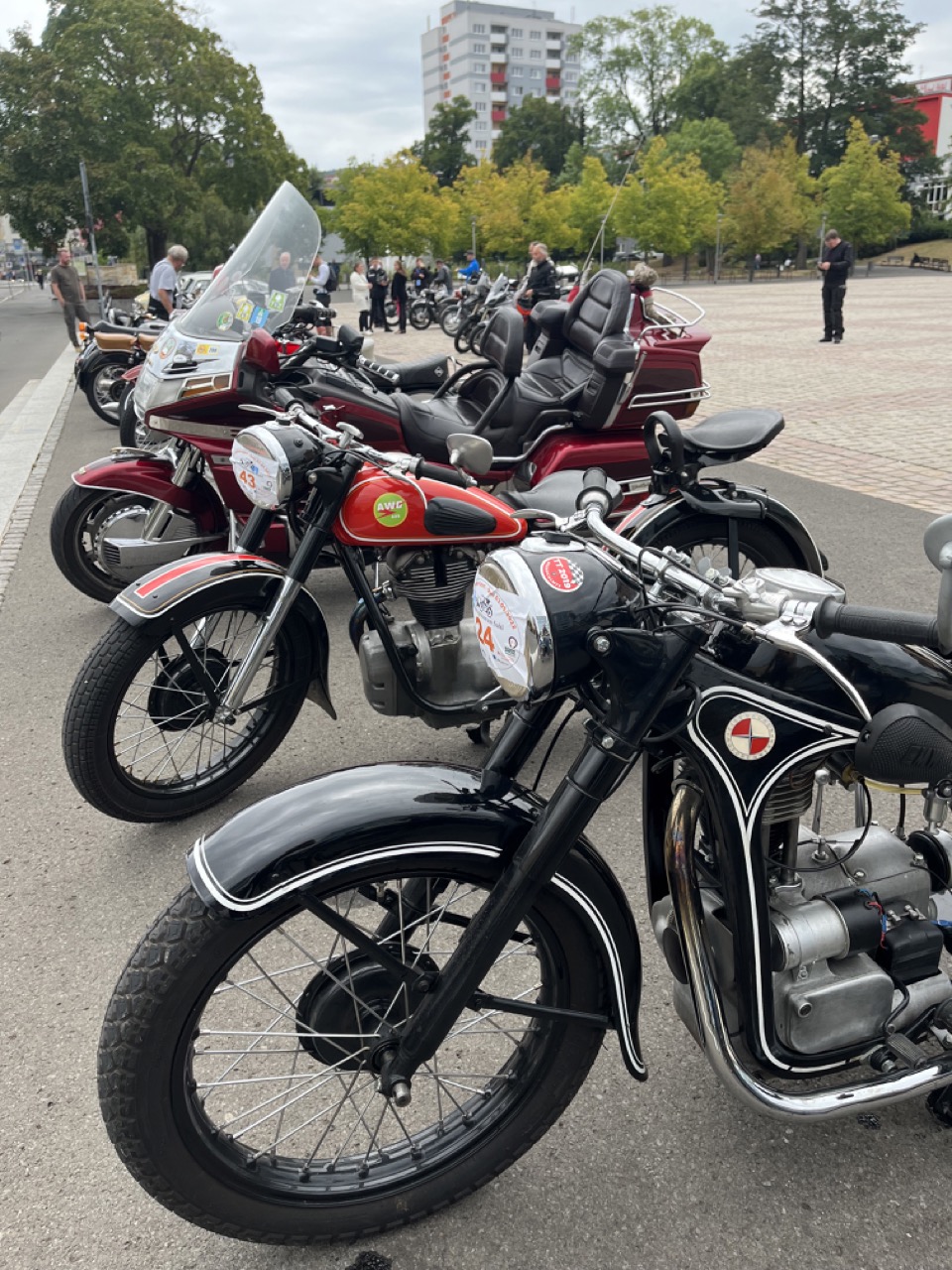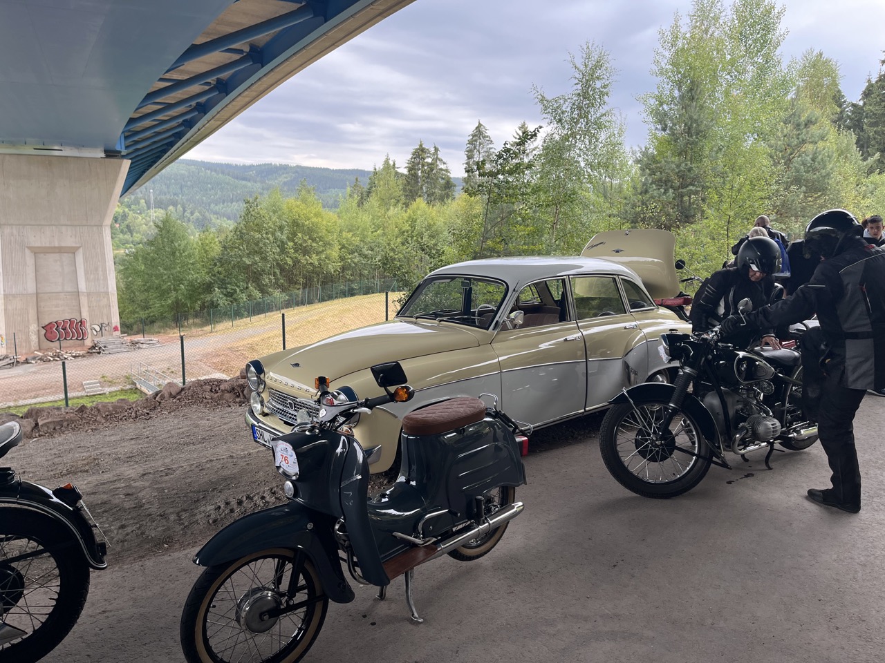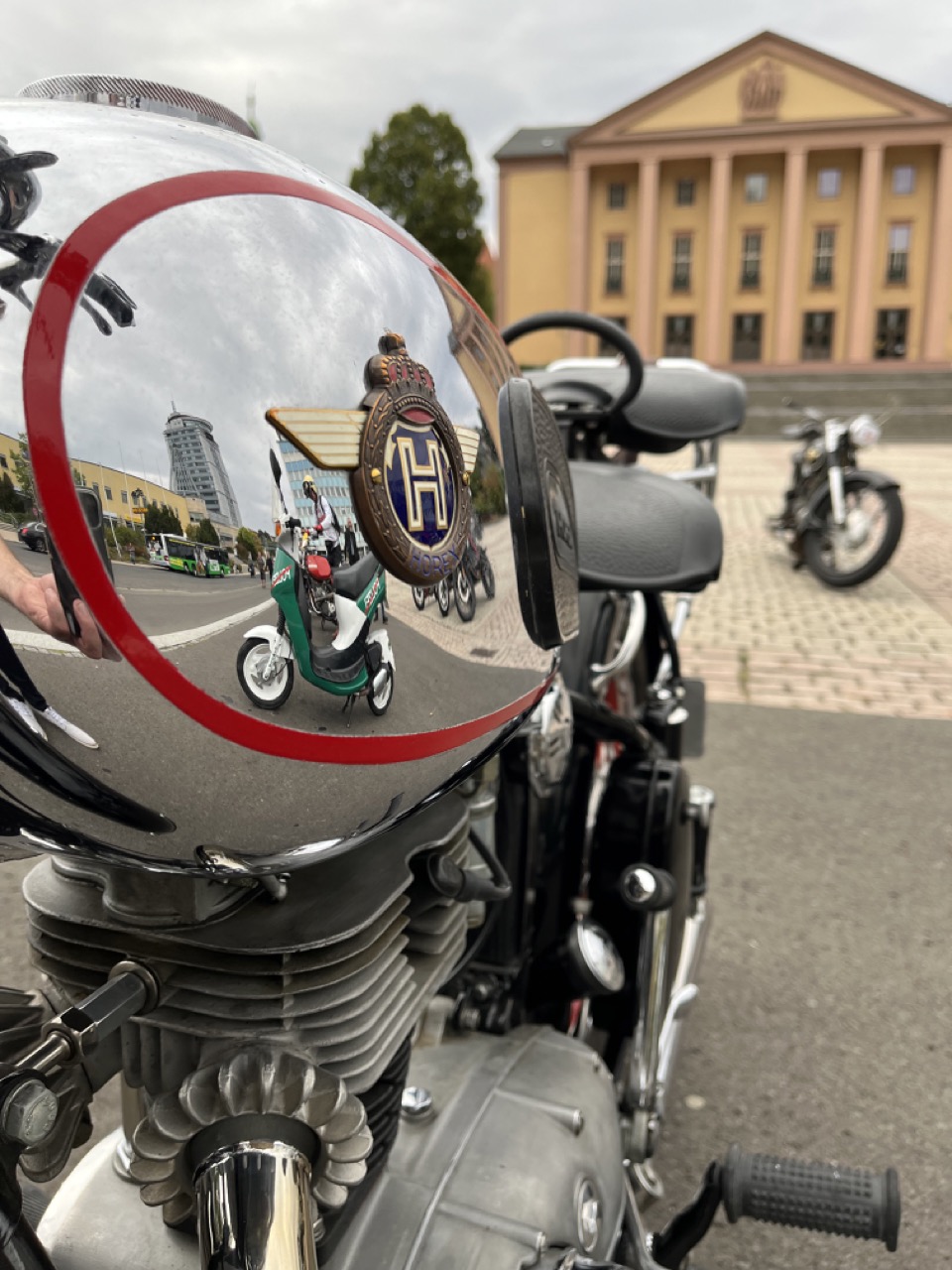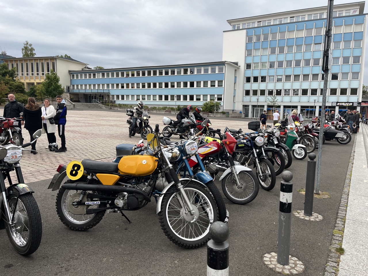Wenn Anfang September in der Fußgängerzone von Suhl schwere Viertaktmotore ihren tiefen Sound fortissimo hämmern, Simson-Werksenduros Drehzahlorgien gen Himmel schicken und japanische Präzionstriebwerke in mezzopiano vor sich hinwerkeln ist wieder Oldtimerfahrt und Ausnahmezustand im Fahrzeugmuseum Suhl. Die Freunde alter Motorräder huldigen ihrem Hobby und feiern einen Oldtimer- Festtagtag rund um Suhl auf den malerischen Bergstraßen des Thüringer Waldes. Mittlerweile gehört die Oldtimerfahrt Suhl bereits zur Tradition und auch die Auswahl des 03. Septembers für die 14. Auflage erwies sich als Glücksfall. Bestes Motorradwetter mit wenigen Regentropfen zwischendurch herrliche Strecken versteckt zwischen Bergen, einsamen Tälern und malerischen Ortschaften im Thüringer Waldes schienen an diesem Tag wie extra aufpoliert für die Teilnehmer mit ihren tollen Oldtimern. Aus vielen Teilen Deutschlands waren sie angereist und von der Simson Schwalbe bis zur Honda Goldwing war so ziemlich alles vertreten, was in dieser Welt zwischen 1926 und 1992 Motorradgeschichte geschrieben hat. Von Ein- bis Vierzylinder von A wie AWO bis Z wie Zündapp reichte das Spektrum des bunten Feldes. Man konnte meinen sie wären an diesem einen Tag nur zusammengekommen um den staunenden und begeisterten Zuschauern an der Strecke ein rollendes Museum zu präsentieren. (Text: Dr.Hartmut Göbel)