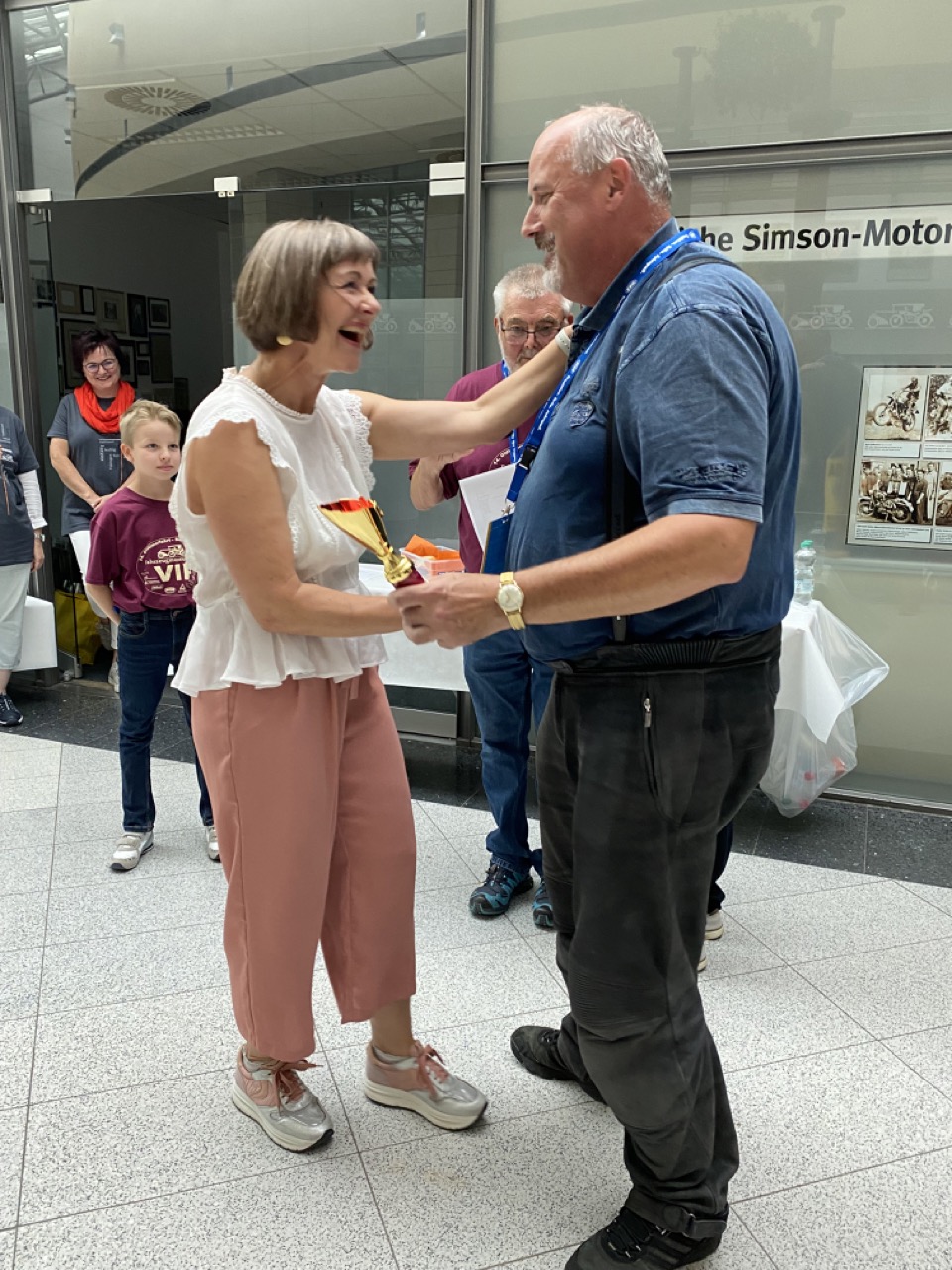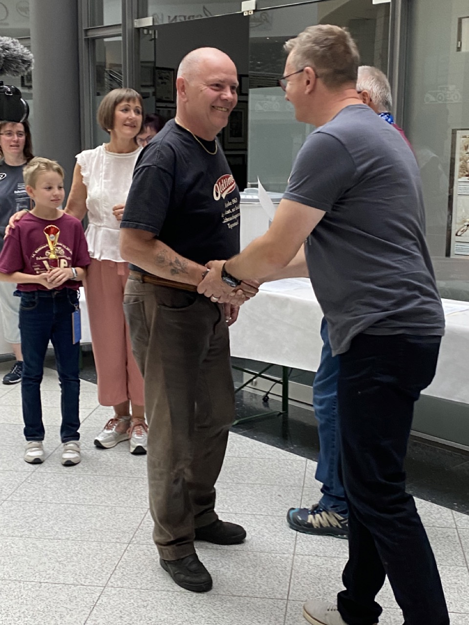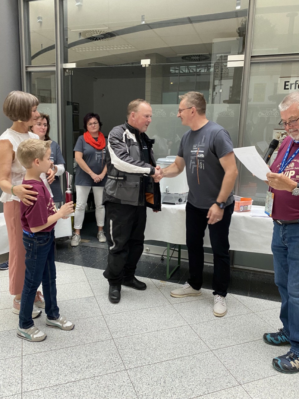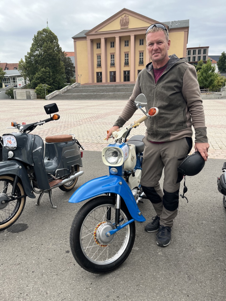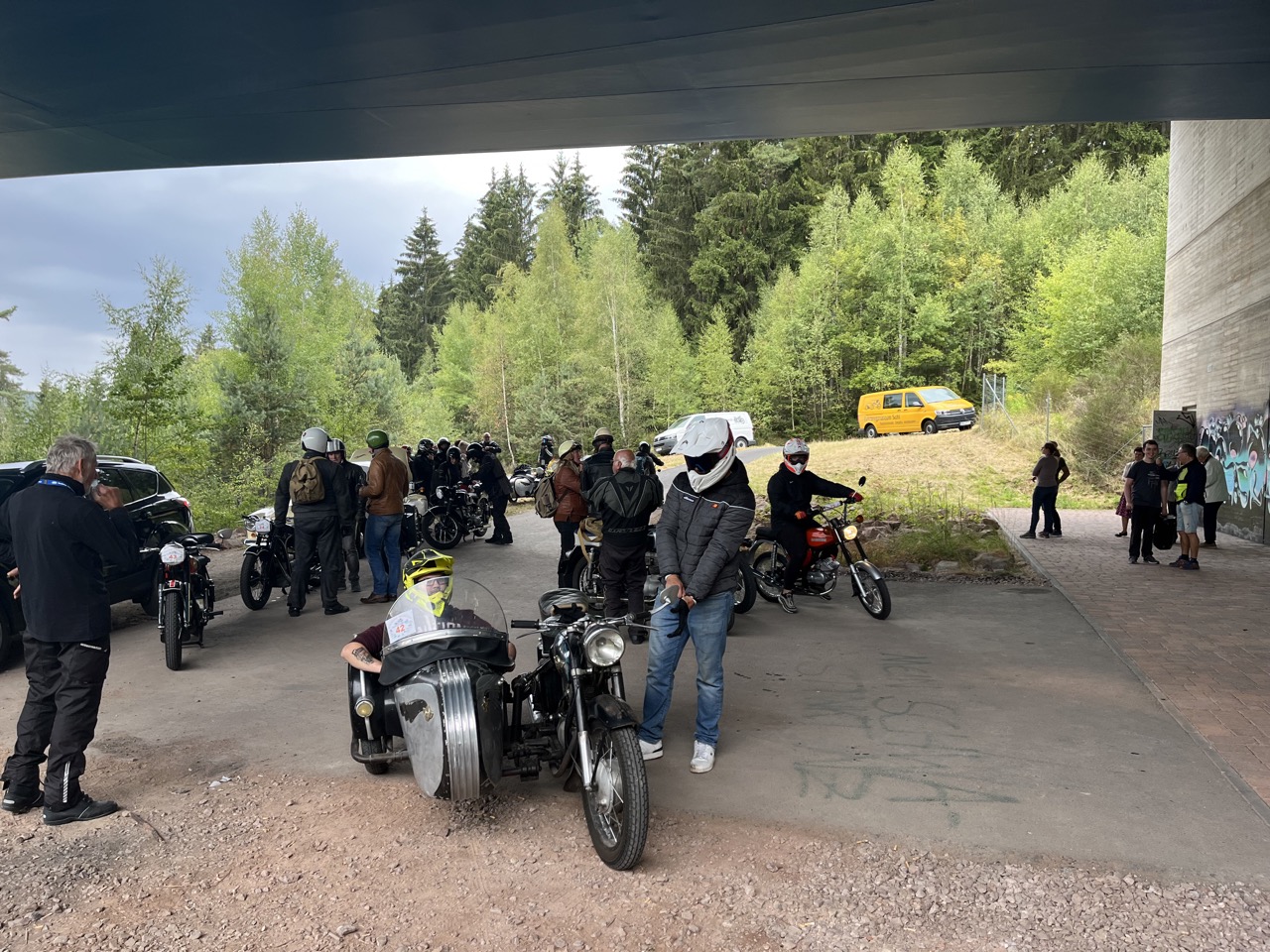 Wenn Anfang September in der Fußgängerzone von Suhl schwere Viertaktmotore ihren tiefen Sound fortissimo hämmern, Simson-Werksenduros Drehzahlorgien gen Himmel schicken und japanische Präzionstriebwerke in mezzopiano vor sich hinwerkeln ist wieder Oldtimerfahrt und Ausnahmezustand im Fahrzeugmuseum Suhl. Die Freunde alter Motorräder huldigen ihrem Hobby und feiern einen Oldtimer- Festtagtag rund um Suhl auf den malerischen Bergstraßen des Thüringer Waldes. Mittlerweile gehört die Oldtimerfahrt Suhl bereits zur Tradition und auch die Auswahl des 03. Septembers für die 14. Auflage erwies sich als Glücksfall. Bestes Motorradwetter mit wenigen Regentropfen zwischendurch herrliche Strecken versteckt zwischen Bergen, einsamen Tälern und malerischen Ortschaften im Thüringer Waldes schienen an diesem Tag wie extra aufpoliert für die Teilnehmer mit ihren tollen Oldtimern. Aus vielen Teilen Deutschlands waren sie angereist und von der Simson Schwalbe bis zur Honda Goldwing war so ziemlich alles vertreten, was in dieser Welt zwischen 1926 und 1992 Motorradgeschichte geschrieben hat. Von Ein- bis Vierzylinder von A wie AWO bis Z wie Zündapp reichte das Spektrum des bunten Feldes. Man konnte meinen sie wären an diesem einen Tag nur zusammengekommen um den staunenden und begeisterten Zuschauern an der Strecke ein rollendes Museum zu präsentieren. (Text: Dr.Hartmut Göbel)